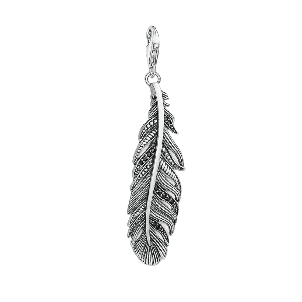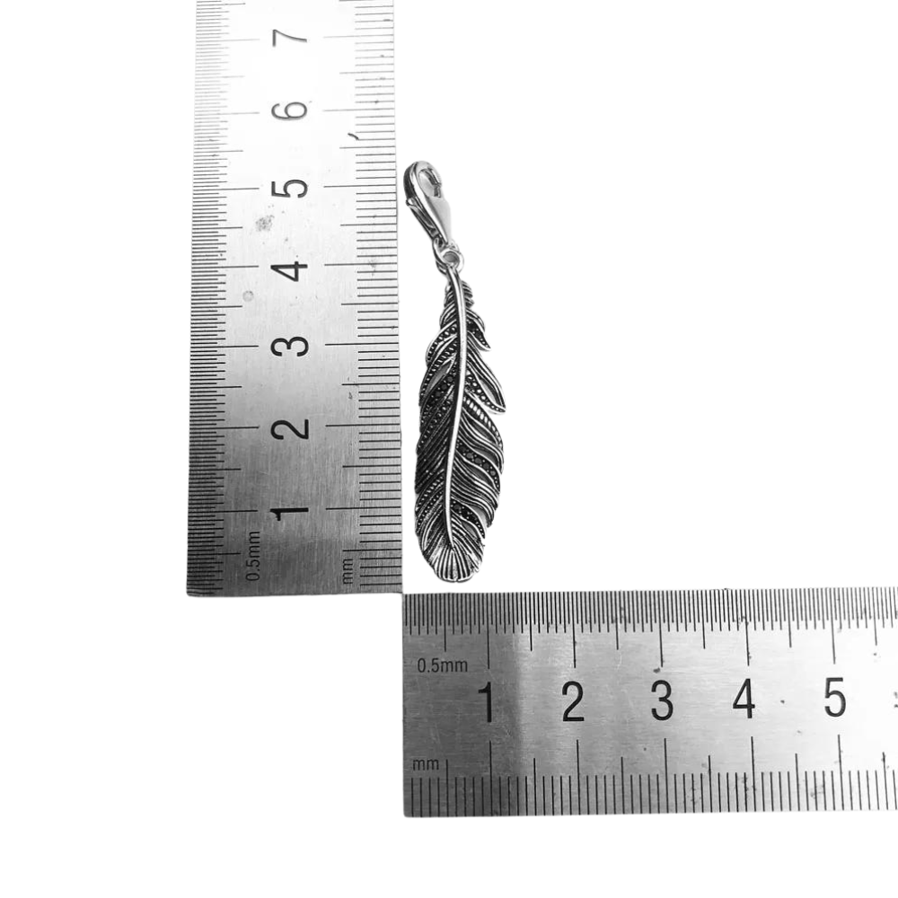 Handgjort av äkta sterlingsilver, kombinerar detta hängsmycke traditionellt hantverk med modern design. Den detaljerade fjäderformen, med en sofistikerad svart finish, skapar en djup känsla av personlighet och karaktär. Perfekt att bära tillsammans med ett westernt halsband, charmarmband eller som en del av en rustik och bohemisk look, vilket låter dig uttrycka din passion för vintage- och rustik stil.