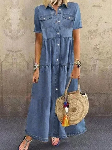 Avslappnad western denimmaxiklänning för alla tillfällen