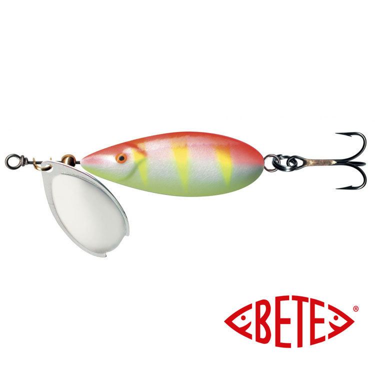 Bete Lotto Spinnare – Lotto ingår i fjällfiskarens standardutrustning. Ytfiskade Lotto kan även användas i grunda forsar och det långkastade draget når även bort till den motsatta stranden. Lotto kan användas både vid sjö- och åfiske och är mycket populär bland diverse laxfiskar samt andra rovfiskar. Lottos fiskliknande kropp är stabil vid invevning och skeden tvinnar inte linan så lätt. Denna lottospinnaren väger 9g och är 35mm.