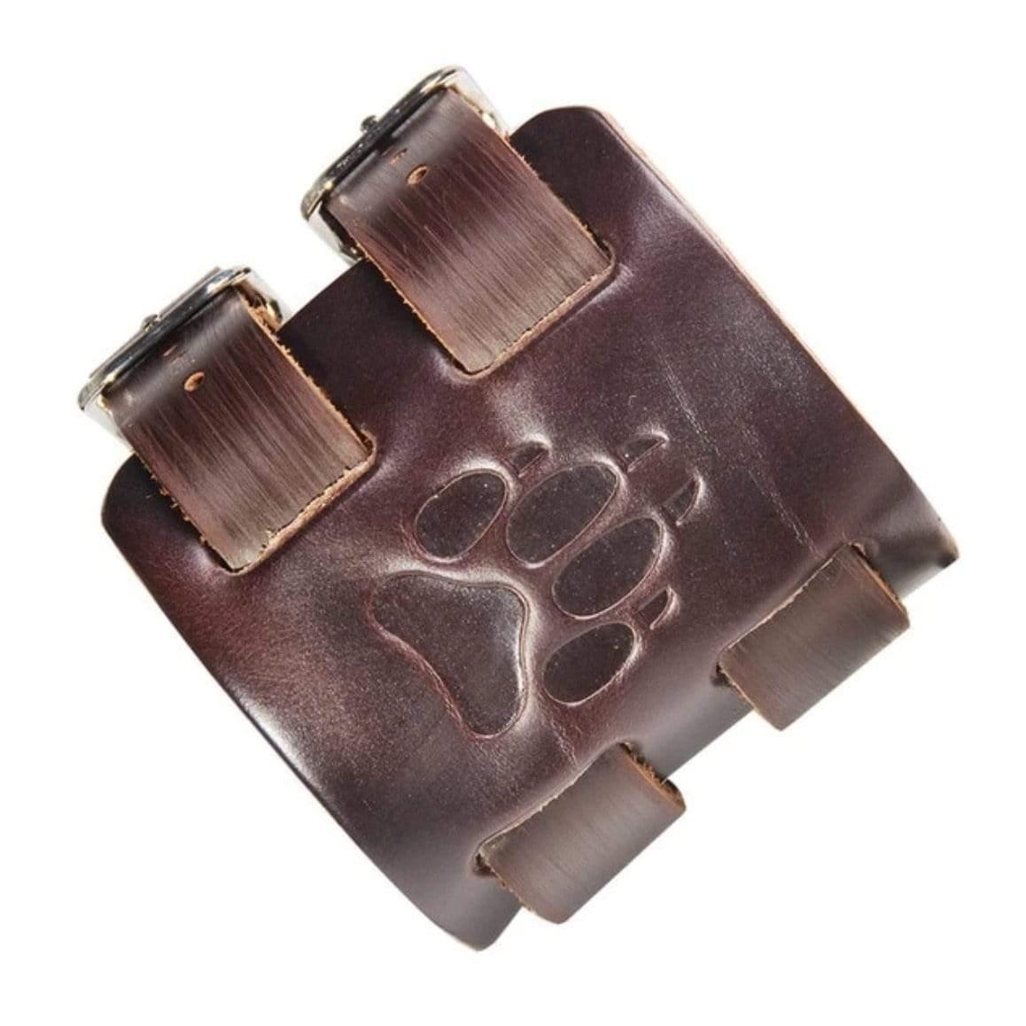 Läderarmbandet för män med björnsymbol visar ett av Montanas fruktade rovdjur.