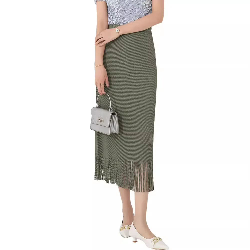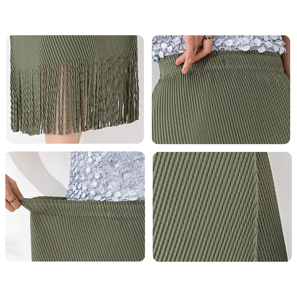 Med sin omsorgsfullt utformade A-linjeform och harmoniska veck passar kjolen utmärkt både till vardags och festliga tillfällen. Den höga elastiska midjan garanterar en bekväm och smickrande passform, vilket gör att kjolen anpassar sig efter olika kroppstyper. Oavsett om du matchar den med en enkel topp eller lager på lager med en snygg blus, blir du garanterat till en blickfångare med denna unika bohemiska design.