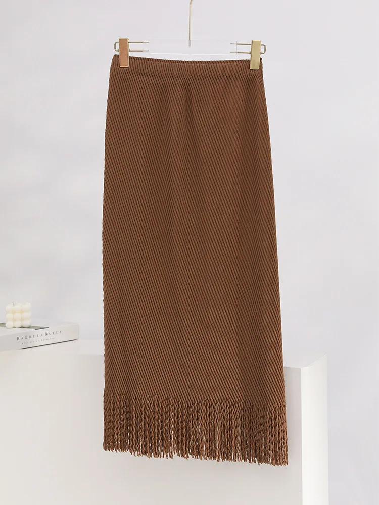 Detaljerad specifikation – Boho western veckad midikjol med tofsar och fransar