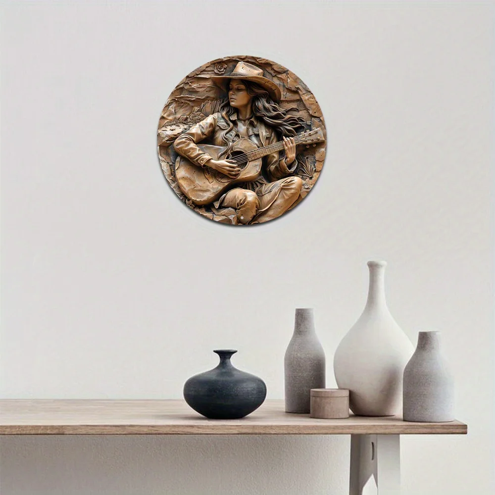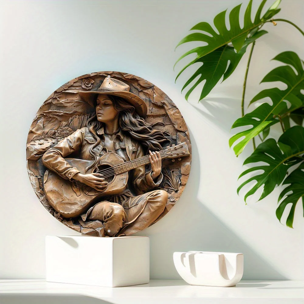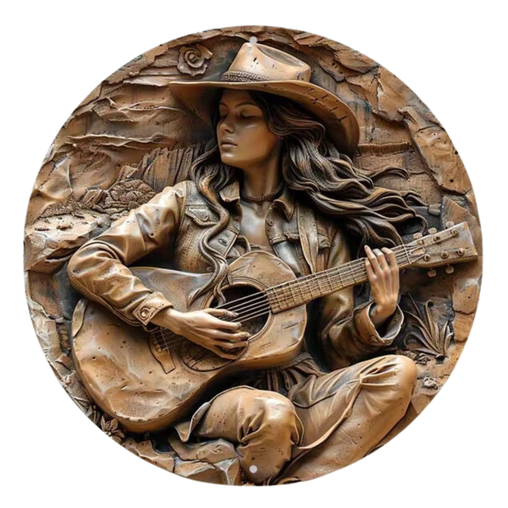 Brons cowgirl gitarr: Perfekt väggplatta för varje rum