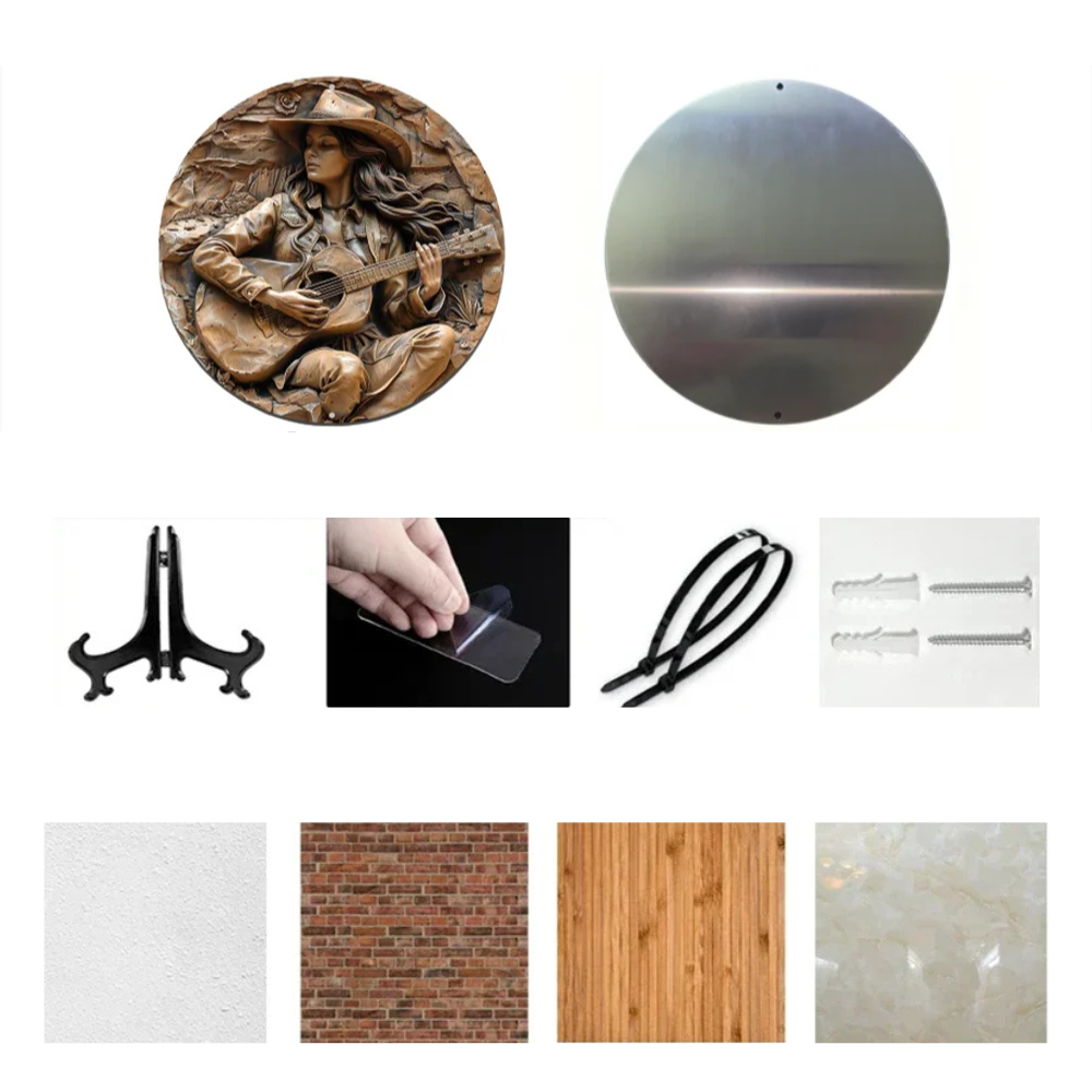 Skänk dina väggar en genuin rustik charm med vår brons cowgirl gitarr western metallväggplatta. Den noggrant utformade designen skildrar en avslappnad cowgirl som spelar på sin gitarr, omgiven av autentiska westerninslag. Oavsett om det gäller vardagsrummet, ditt favoritkafé eller trädgården ger denna unika väggdekoration ett vintageinspirerat utseende som förhöjer stämningen i alla miljöer.