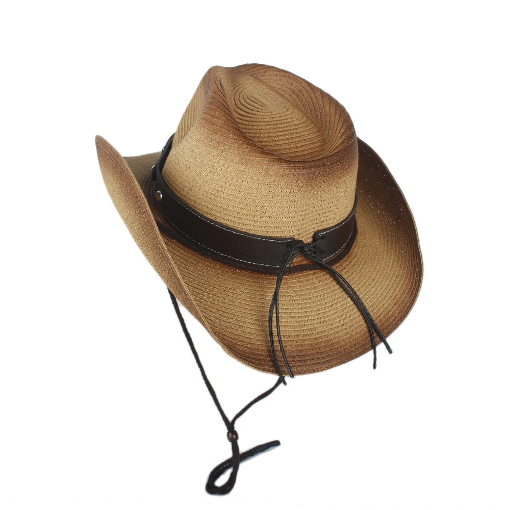 Upplev tidlös western elegans med denna unika bruna ombré stråhatt. Den imponerande övergången från ljus till mörkbrun skapar en levande visuell effekt, samtidigt som den erbjuder praktiskt solskydd. Den iögonfallande långhornaccenter på läderbandet förstärker hattens autentiska westerna karaktär och ger den en extra touch av originalitet.