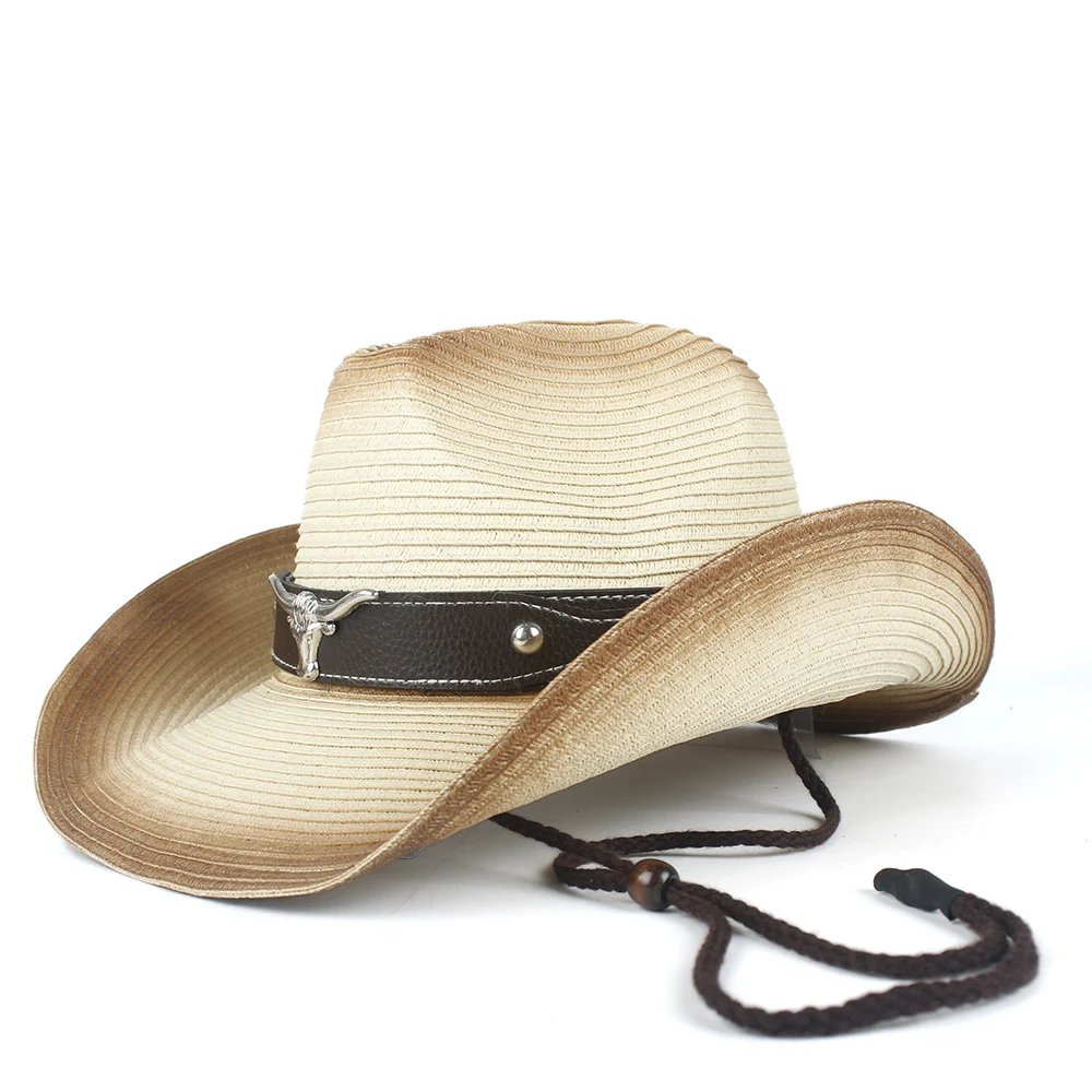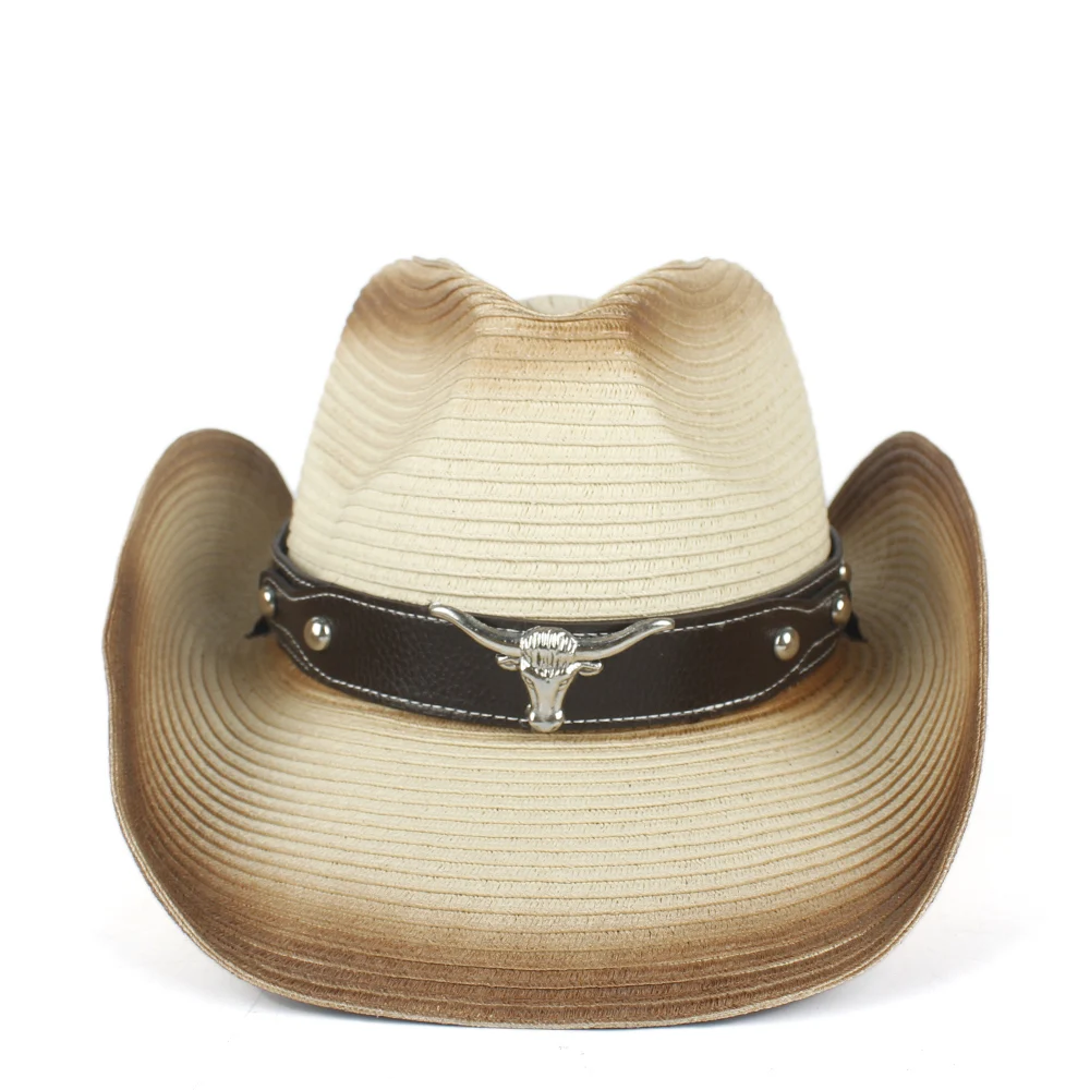 Upptäck den bruna ombré strå cowboyhatten med långhornaccent
