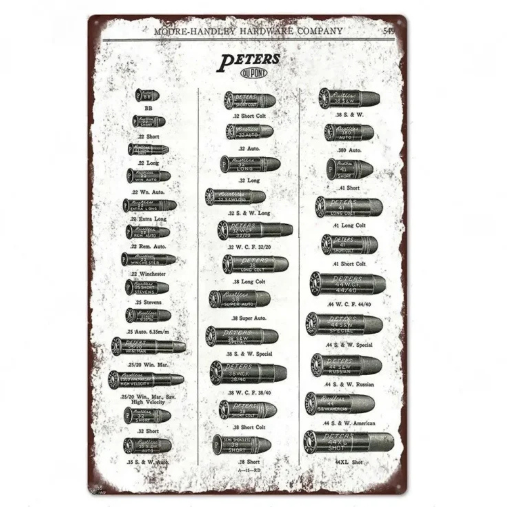 Cowboy metall väggplatta ammunitionsdiagram