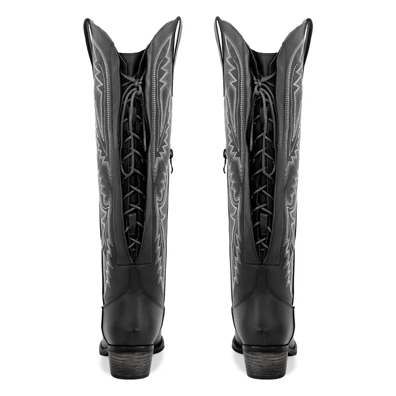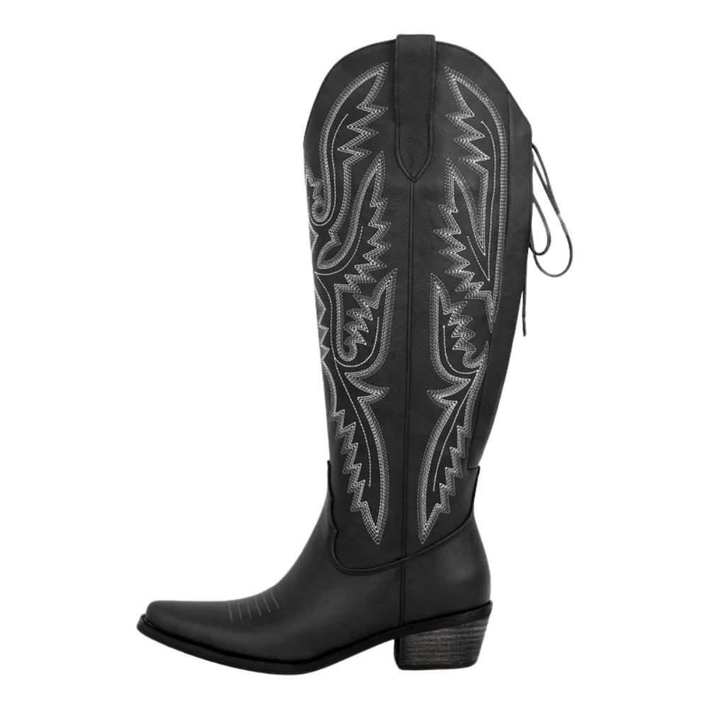 Eleganta damcowboy boots med broderade detaljer och sidodragkedja