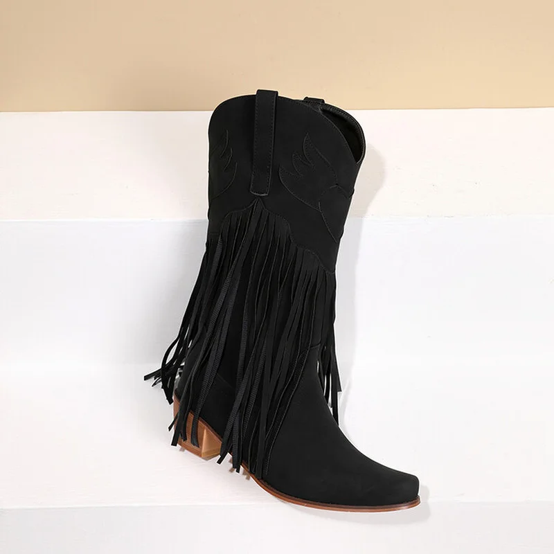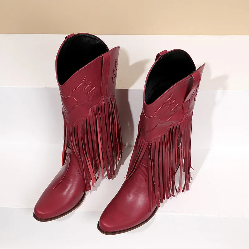 Stiliga dam retro western-cowboy-boots med tofs och frans