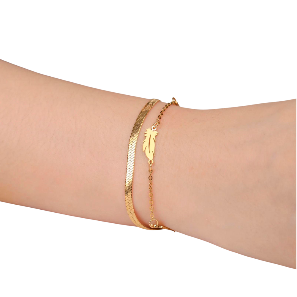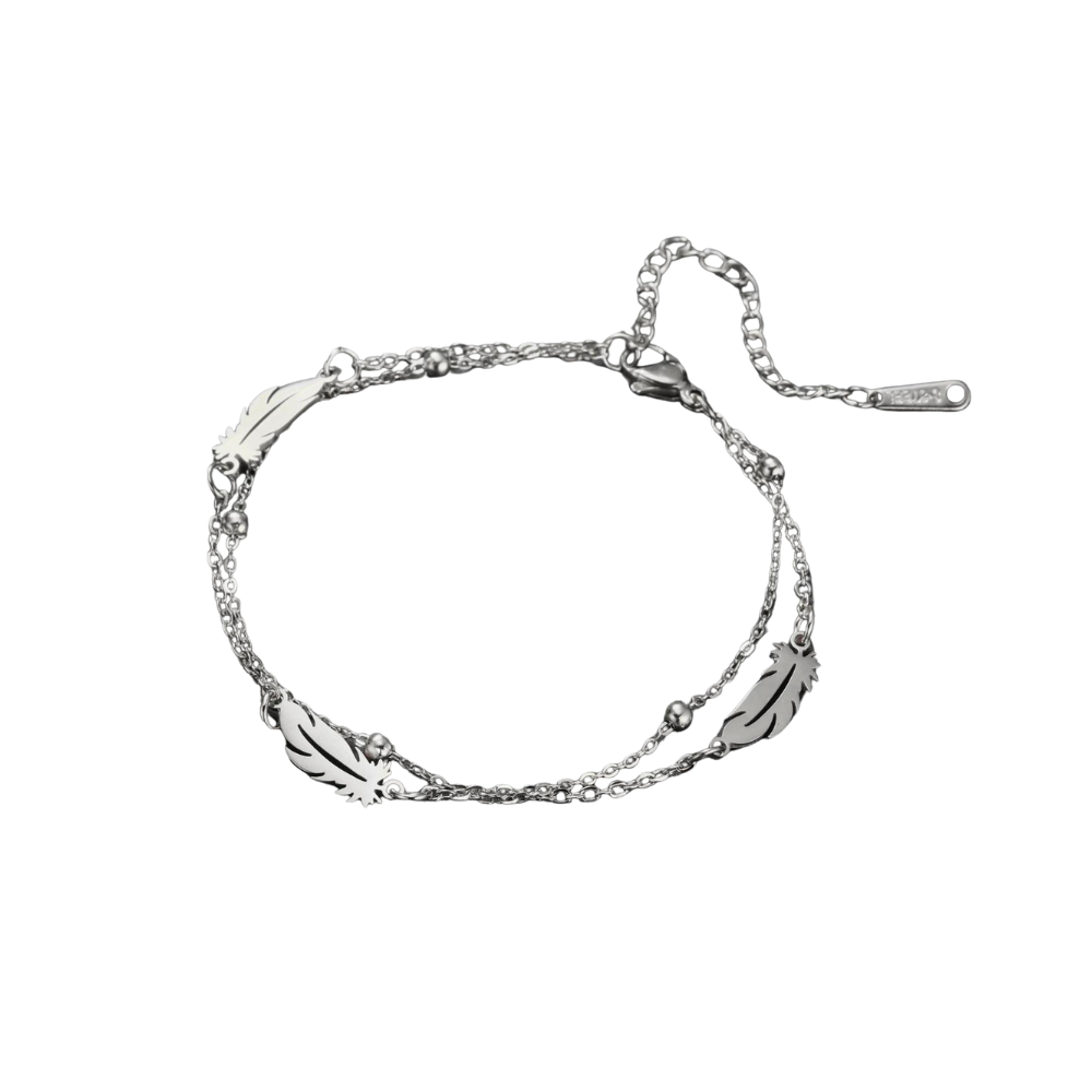 Elegant damarmband i rostfritt stål med fjädercharm