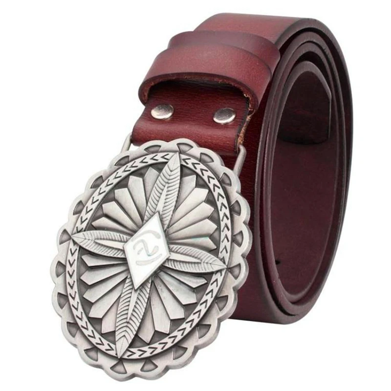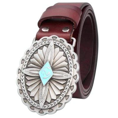 Upptäck ditt nya favoritaccessoar – detta eleganta westernbälte i äkta nötskaläder är designat för att fånga uppmärksamheten med sitt unika, utsmyckade silverspänne. Bältet kombinerar hållbarhet med förstklassig stil, där det intrikata paisleymönstret på spännet skapar en autentisk westernkänsla. Detta gör det till ett självklart val för dig som vill uttrycka en djärv och trendig modeidentitet.