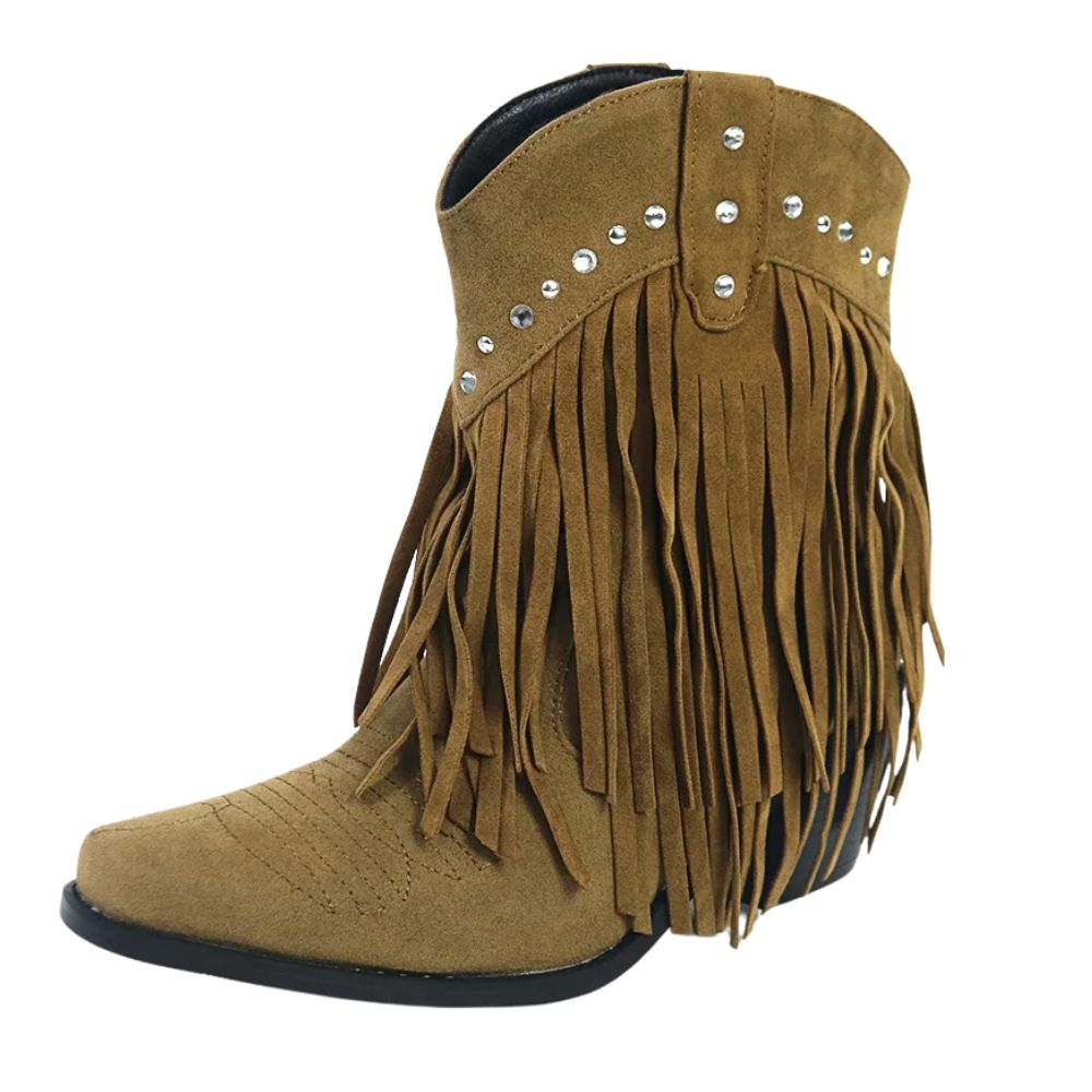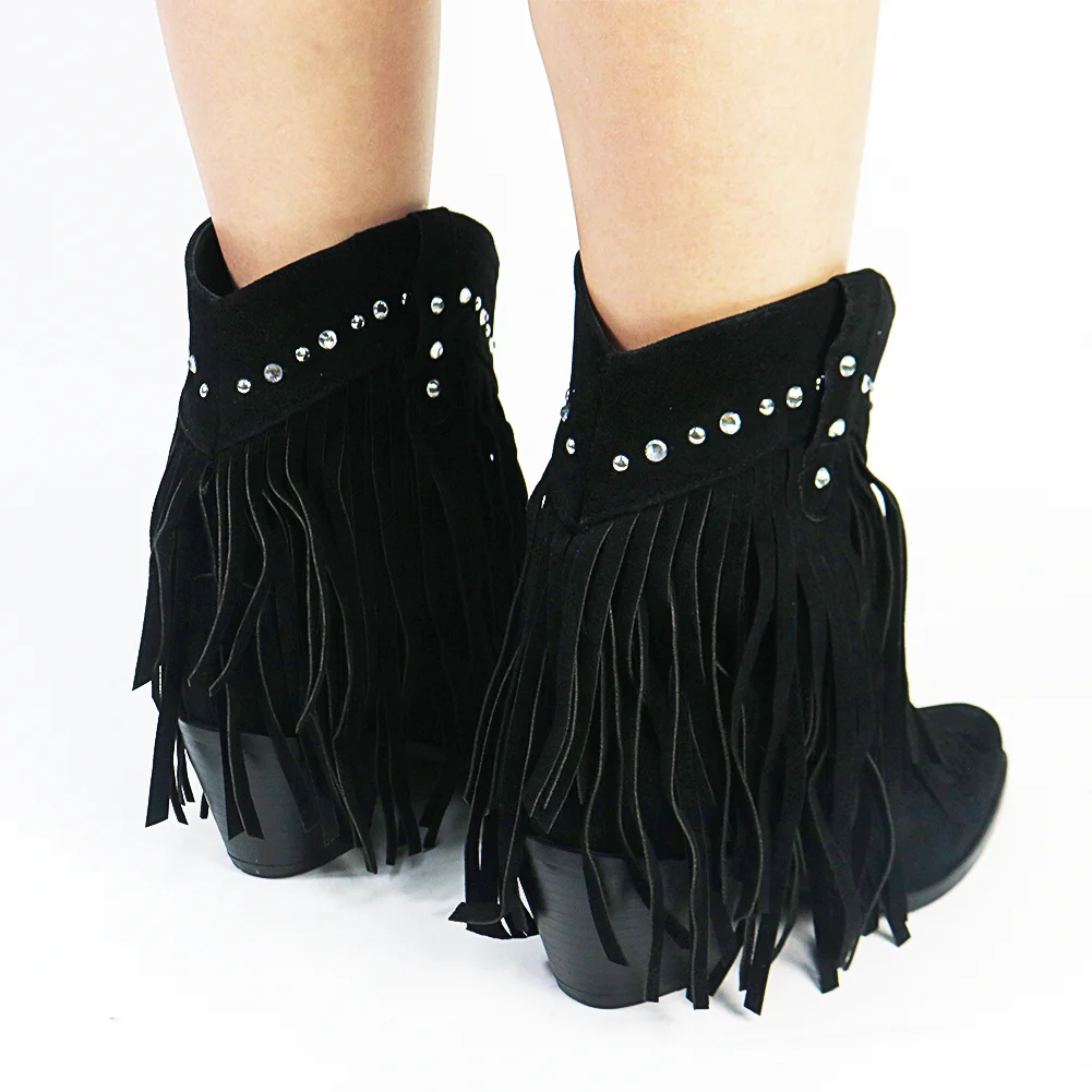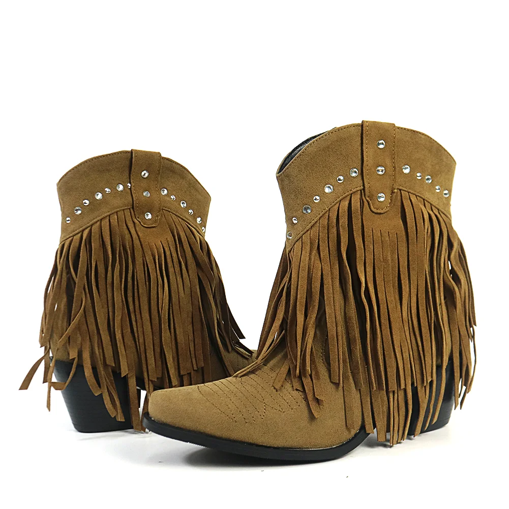 Handgjorda med omsorg med högkvalitativa material erbjuder dessa kängor en mjuk innerfoder av mikrofiber för extra komfort. De retroinspirerade fransarna och den stilrena spetsiga tån bidrar till en äkta vintagekänsla, vilket gör dem till ett utmärkt val oavsett om du kombinerar dem med jeans, kjol eller klänning. Med sin unika charm och bohemiska anda kommer de att förhöja din stil och ge dig ett trendigt, retroinspirerat uttryck.