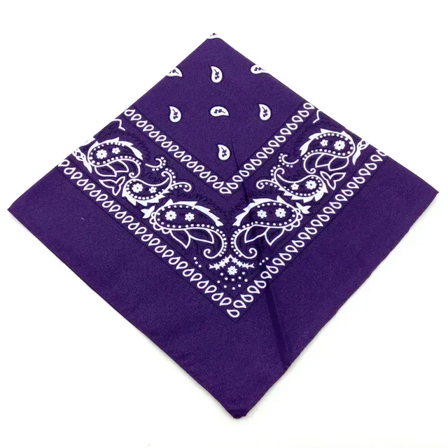 Tillverkad i högkvalitativ, lätt polyester, erbjuder bandanan optimal komfort och långvarig hållbarhet. Materialet är blek- och färgbeständigt, vilket säkerställer att den djupa lila färgen och det detaljerade paisleymönstret förblir livfullt även efter upprepade tvättar. Med måtten 53 x 53 cm ger den en rad stylingmöjligheter – bär den som halsduk, huvudbonad eller som en iögonfallande accent till din väska eller hatt.