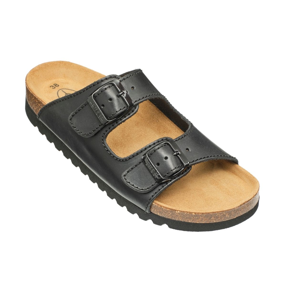 Klassisk tvåremmars damsandal Mjukt skinn med fodring av cambrelletyg Korkfotbädd med anatomisk uppbyggnad