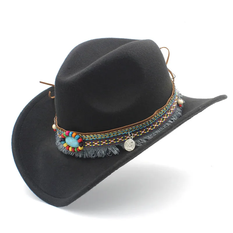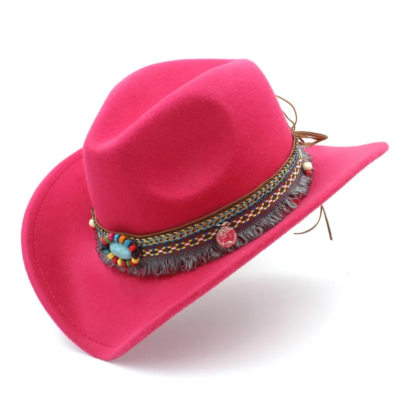 Färgglad pärlade filthatt i westernstil för kvinnor