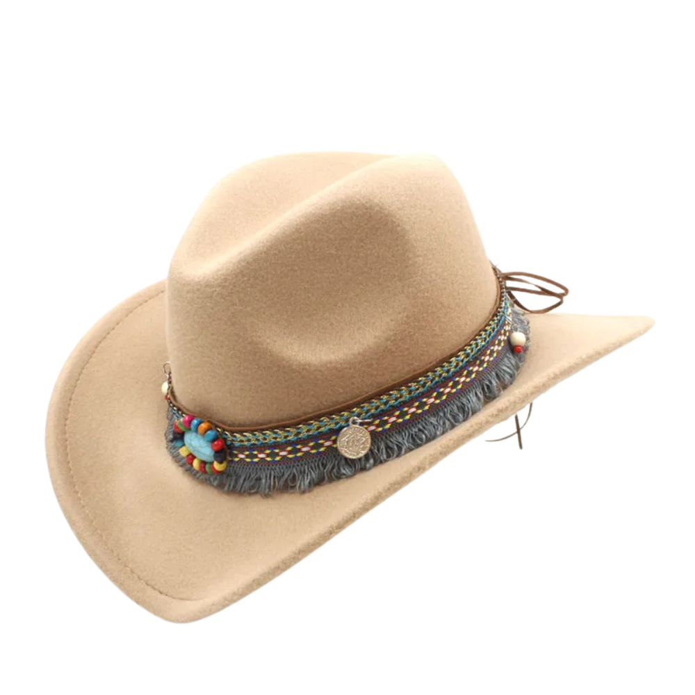 Västerntema filthatt med färgstarka detaljer