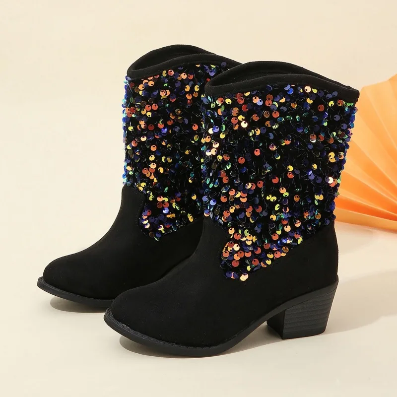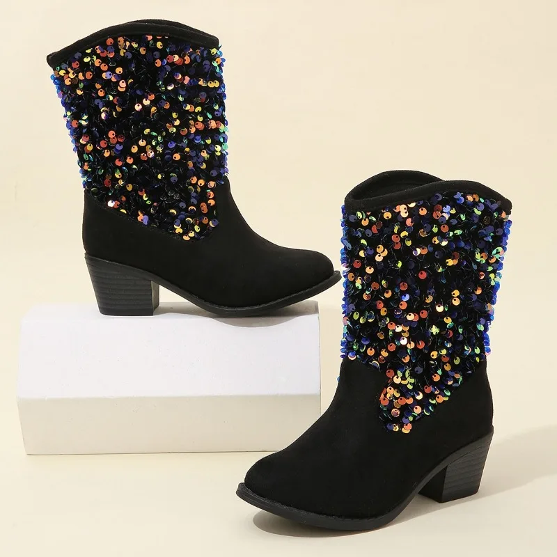 Flickors glittrande paljettprydda cowboy boots för alla tillfällen