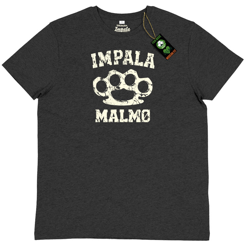 Impala Malmö Knuckle Charcoal Melange T-shirt. T-shirt i ekologisk bomull, tillverkad med rättvisa villkor.