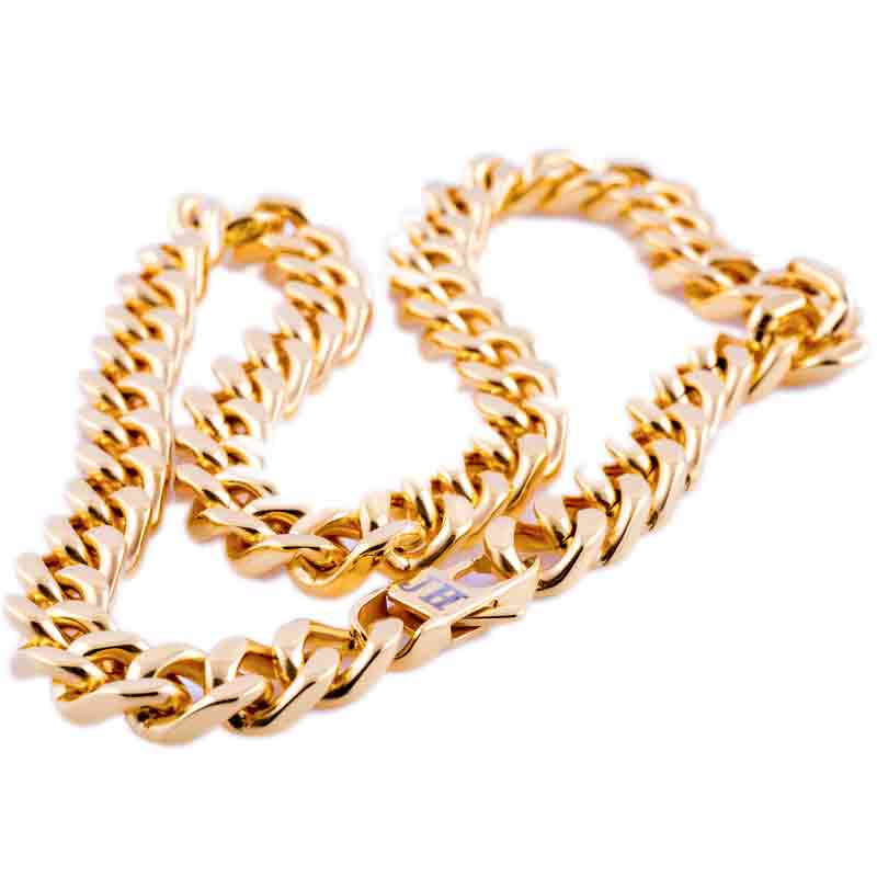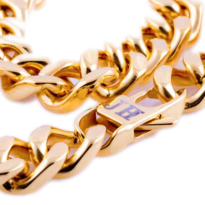 Pansarlänk i guldpläterat stål vilket ger ett halsband med bra tyngd och snygg look.