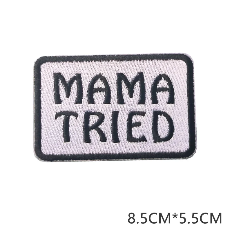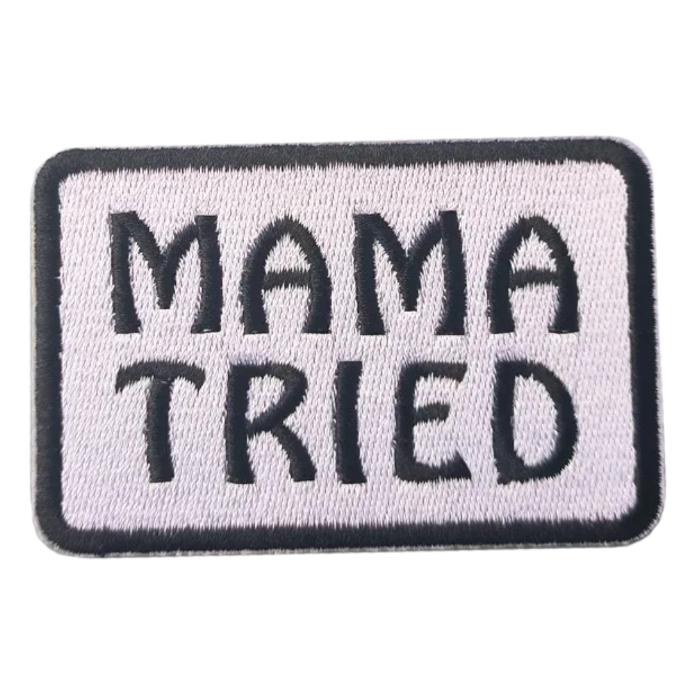 Ge din garderob en touch av rustik elegans med Mama Tried Cowboy stryk-på broderad patch – den perfekta detaljen för alla äkta cowboyälskare. Den iögonfallande svartvita designen och autentiska westernstilen gör denna patch till ett måste för den som vill sticka ut med en klassisk, men modern, look.