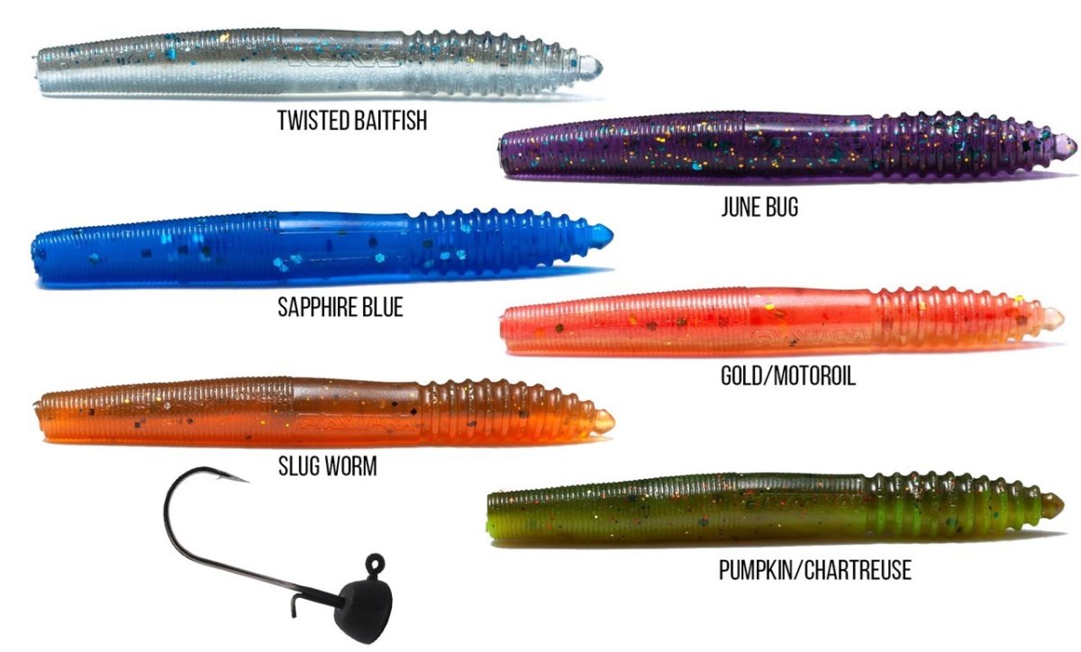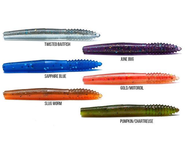 | Färg | Gold/Motoroil, Junebug, Pumpkin/Chatreuse, Slug Worm, Twisted Baitfish |