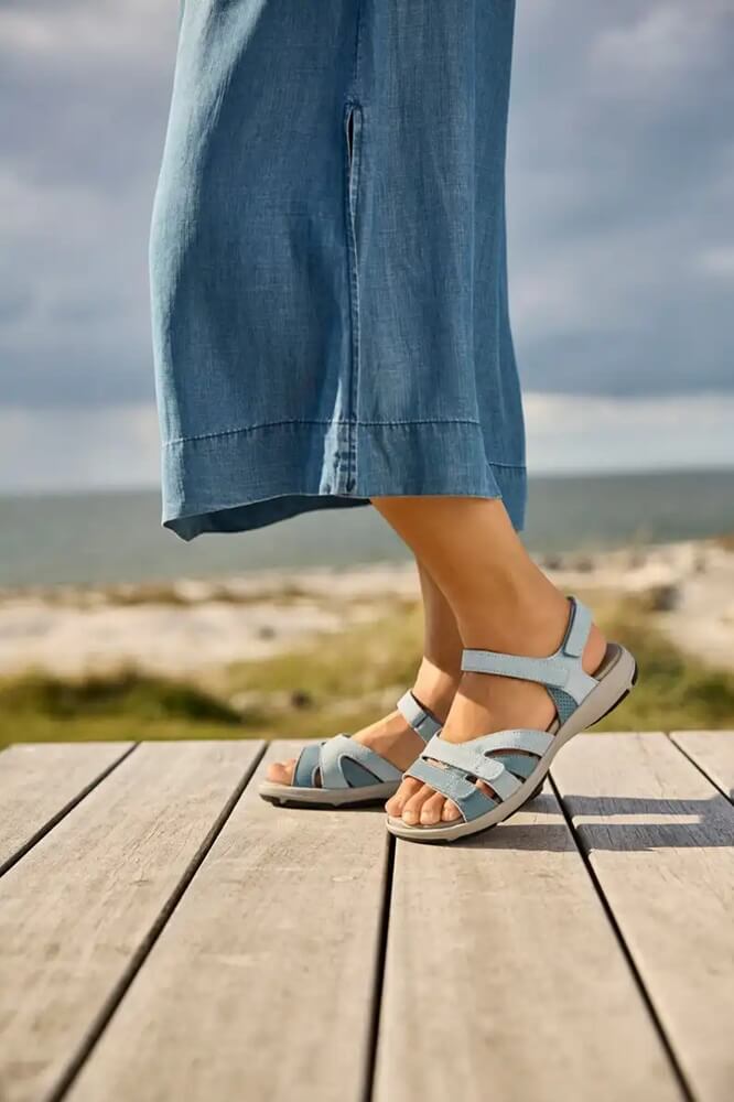Elsie från New Feet är en sportig och bekväm sandal som kombinerar stabilitet, flexibilitet och hög komfort. Den är designad för att ge optimal passform och stöd under hela dagen, oavsett om du använder den till vardags eller under längre promenader.