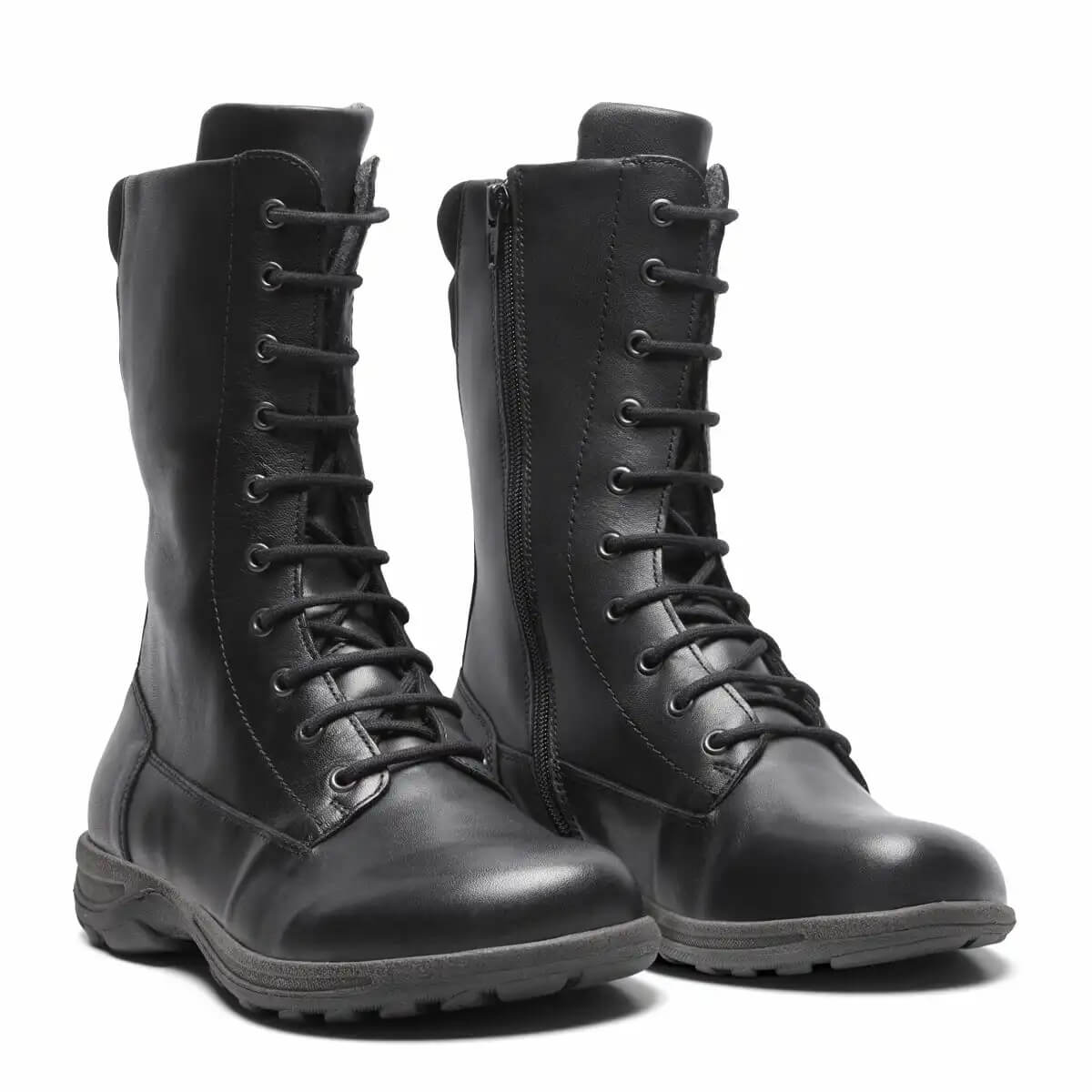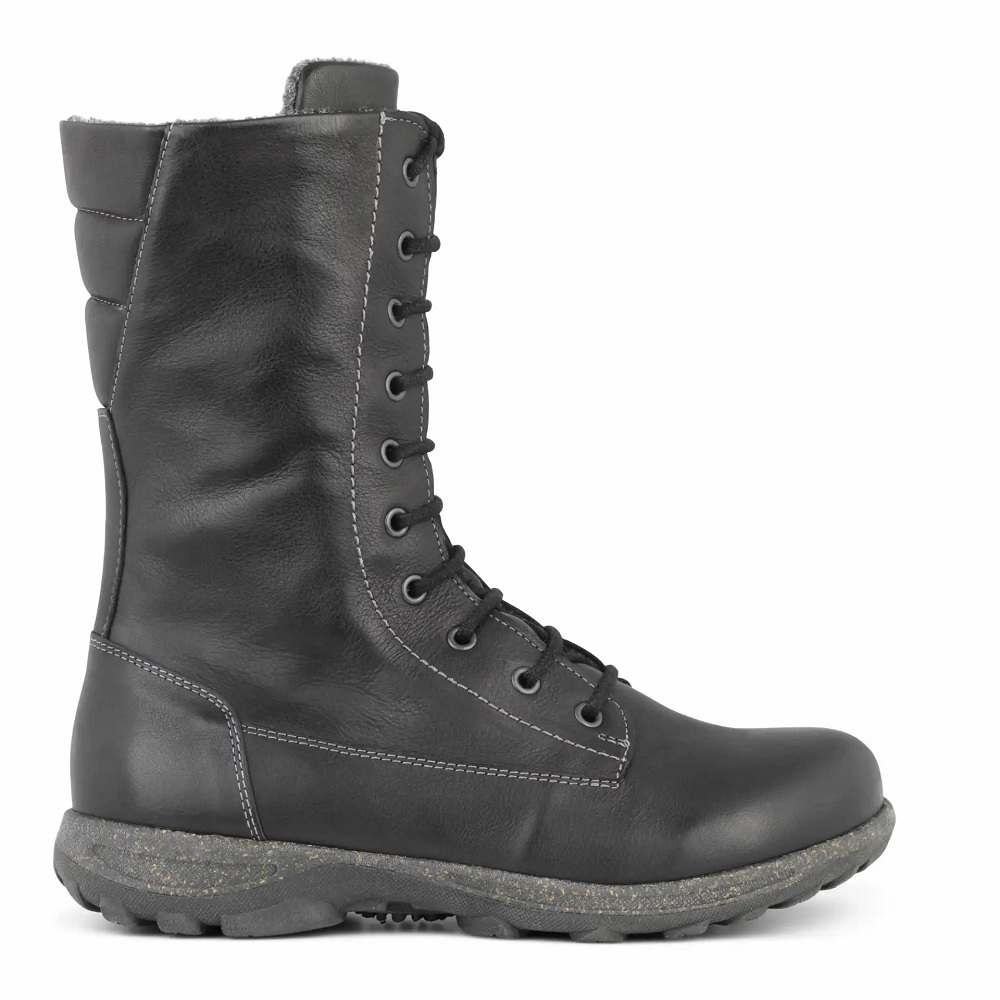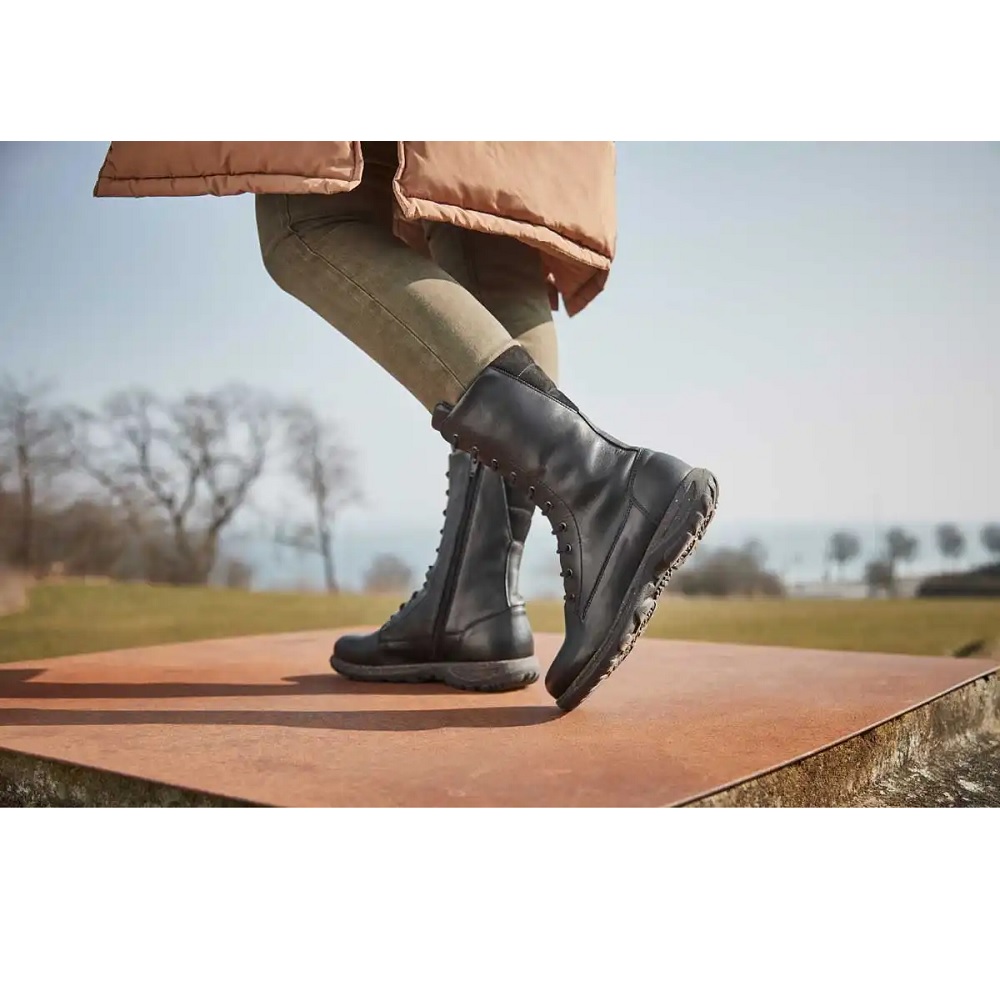 Fodrade damstövlar med snörning och dragkedja. Läder med struktur. Löstagbar 6 mm stötdämpande Protektor innersula.