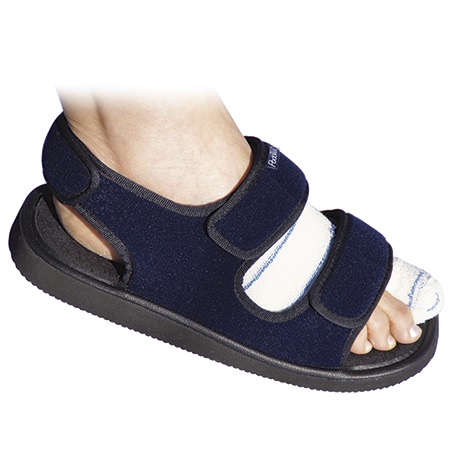 En rymlig textiltoffel/sko som är lätt att ta på och av. Speciellt användbar vid bandageringar eller gipsningar. OBS! Produkten är 1 st sko, inte ett par skor.