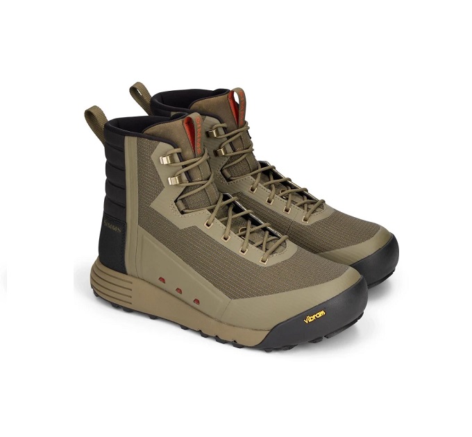 - Vibram IdroGrip och Vibram IdroGrip Flex i G.O.A.T. (Grip On Aquatic Terrain) konstruktion, unika för Simms