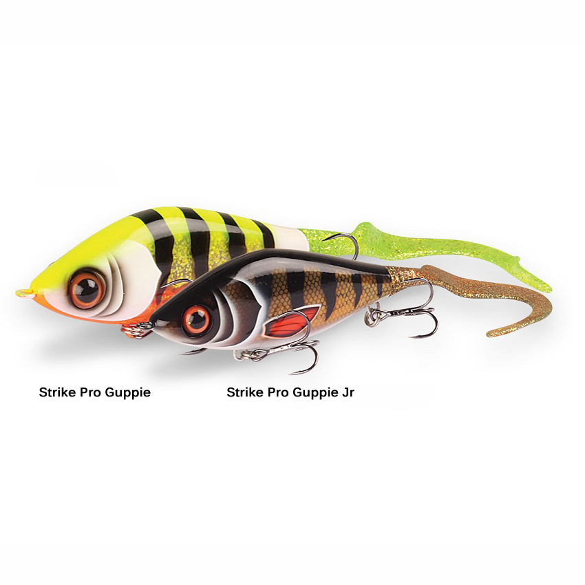 Strike Pro Guppie – Det första som man lägger märke till med Guppie är detaljrikedomen i färgmönstret. Fram tills nu har dessa färger endast varit tillgängliga på de handmålade träbetena tillverkade av Joe Peterson. Strike Pro och CWC i samarbete med Peterson tar nu dessa unika färger till den stora massan för första gången. Båda storlekarna är sjunkande.