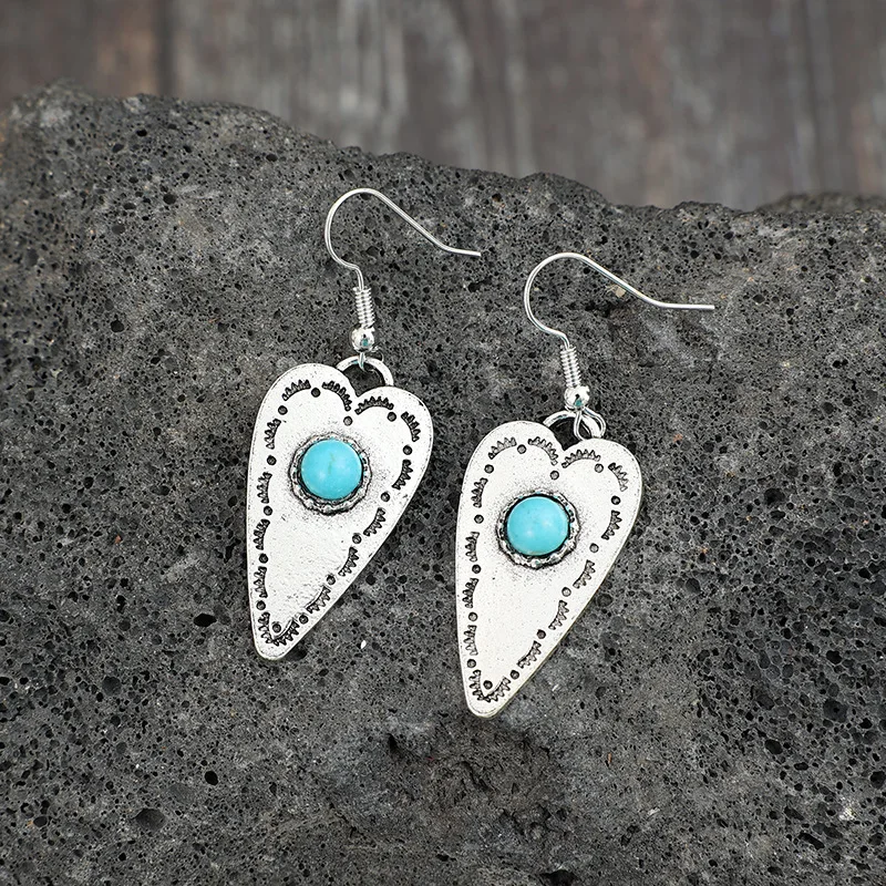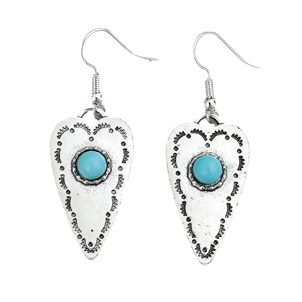 Westerna hjärtdroppsörhängen med turkos accent för din stil
