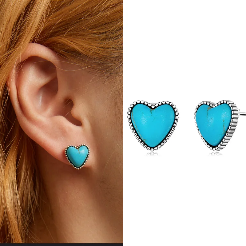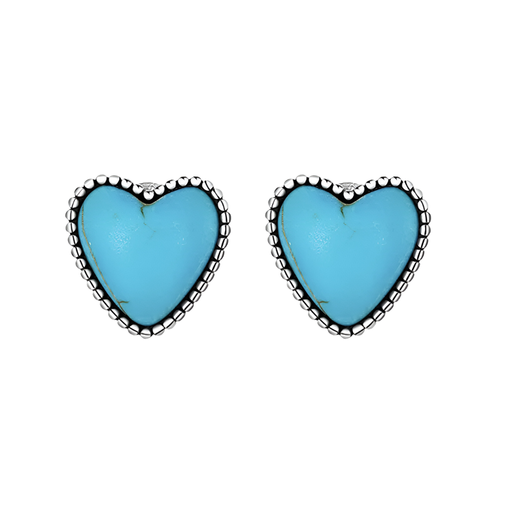 Västerländska hjärtformade turkosa örhängen med stift i sterlingsilver