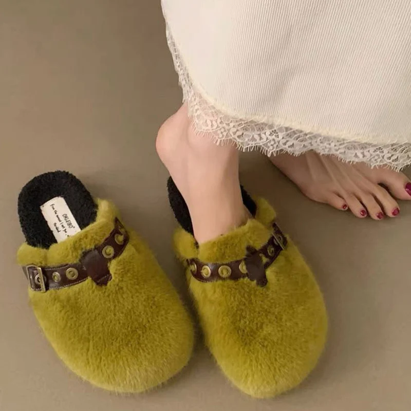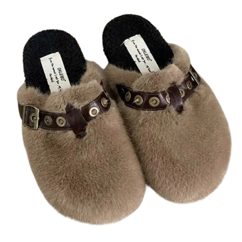 Upplev elegansen med westernt spänne och fauxpäls i toffelmules