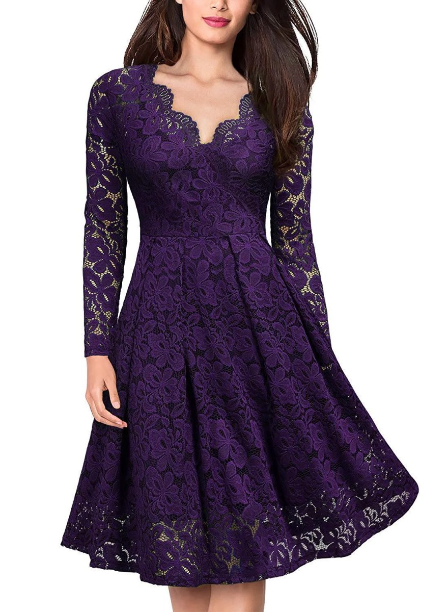 Tillgänglig i flera eleganta färger, såsom röd, lila, grön, marinblå och klassisk svart, är denna klänning det självklara valet för en rad olika tillfällen. Den diskreta dragkedjan bidrar till en smidig och perfekt passform, medan den fina spetsen ger en extra feminin touch. Oavsett om du är på väg till en fest, ett bröllop eller ett exklusivt evenemang, är denna spetsklänning en tidlös och oumbärlig del i varje modeintresserad garderob.