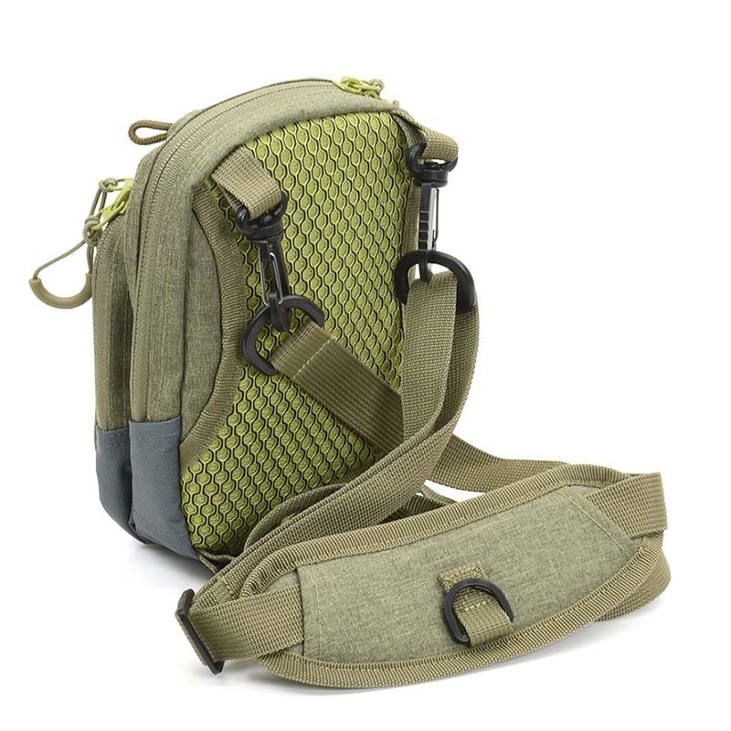 Vision Mini Bra – Det stor facket rymmer en stor flugask och det mindre facket rymmer en mindre ask eller tafsar, tafsmaterial och annat. Frontfickan av nät är praktisk för saker man måste ha snabb tillgänglighet till. Rygg- och nackremmen kan tas bort om du skulle föredra att hänga väskan på din Aqua Day väska eller i D-ringarna på dina vadare. Mini Bra kan också hängas i vadarbältet som en midjeväska. På nackremen finns en praktisk D-ring, där man kan hänga håven.