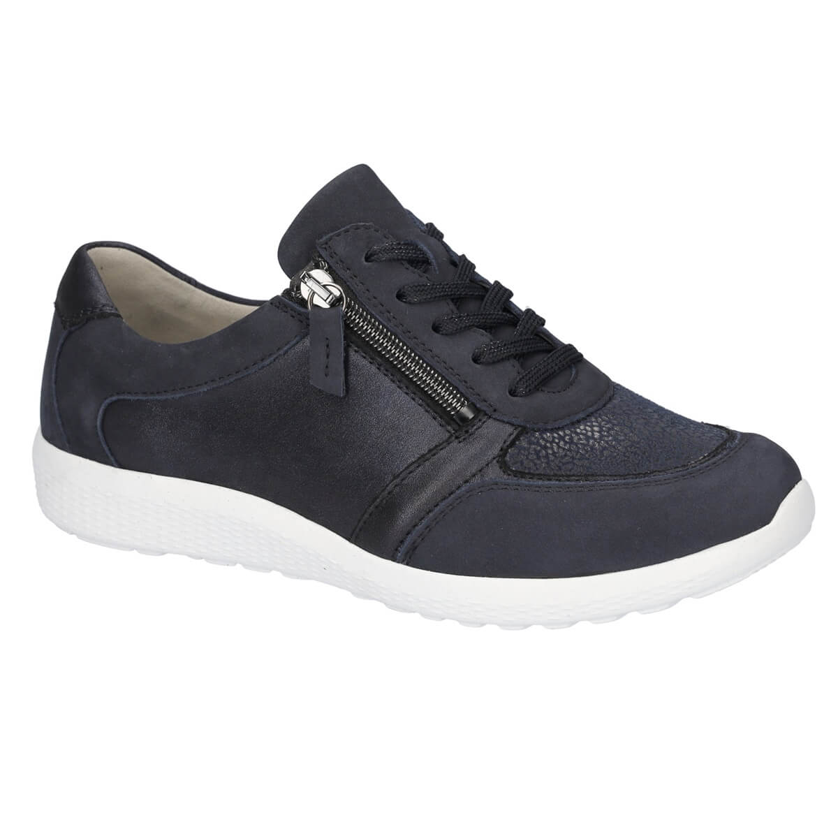 Modellen Ira ingår i Waldläufers serie Orthotritt för dig som har känsliga fötter och vill ha en bekväm sko. Innerdel i textil med stretch i tåpartiet och stoppade, utbytbara fotbädddar. Praktisk dragkedja på sidan för att du lätt ska komma i och ur skon.