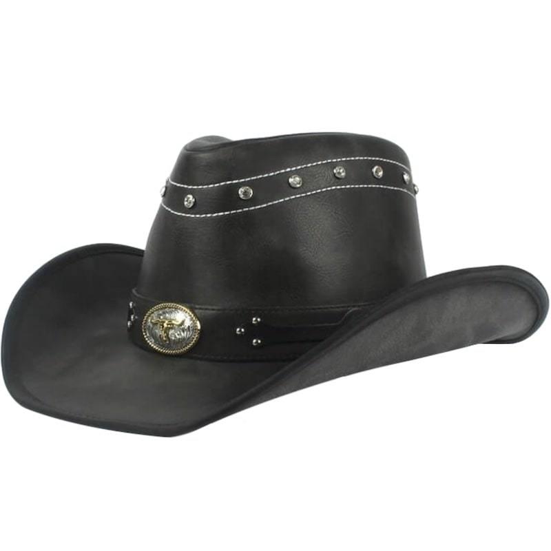 Den är tillverkad av äkta läder av hög kvalitet och har en rem som föreställer en buffelkula, en symbol för den amerikanska vilda western. En cowboyhatt som påminner om många mytiska westernscener.